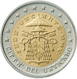 Ponadto na czas pomiędzy pontyfikatami Watykan wydał specjalną monetę o wartości dwóch euro. Zamiast wizerunku papieża umieszczono na niej klucze św. Piotra pod otwartym parasolem oraz herb Kamerlinga Świętego Kościoła Rzymskiego, kard. Tarcisio Bertone. Takich monet wybito 125 tys. sztuk.