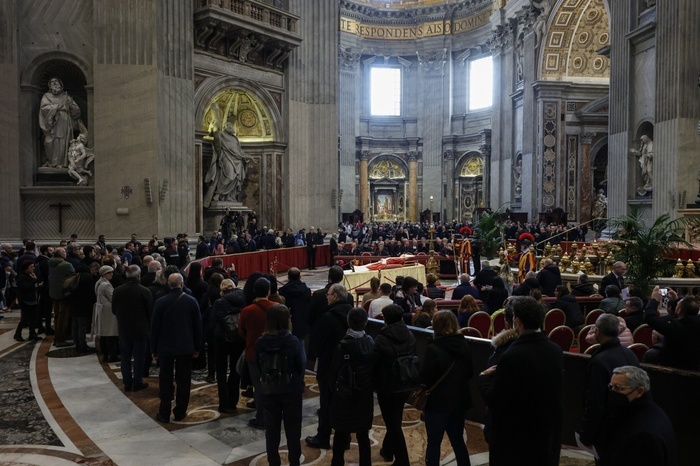 Dziś wieczorem po zamknięciu Bazylki św. Piotra ciało Benedykta XVI zostanie złożone do cyprysowej trumny. Zgodnie z tradycją znajdą się w niej paliusze, które nosił zmarły Papież jako arcybiskup Monachium i Rzymu, monety i medale z czasów jego pontyfikatu oraz rogito, czyli zamknięty w metalowej tubie tekst, w którym po krótce została opisana jego papieska posługa.